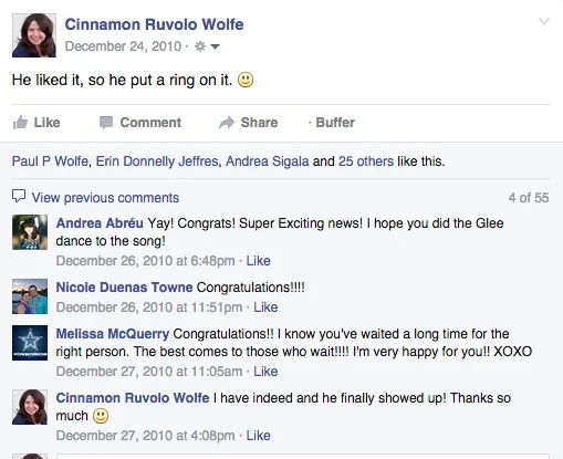We went to my friends house and shared the news with everyone and then I posted this on Facebook so it would be official. We all know nothing's official until it makes its way to facebook ;-)